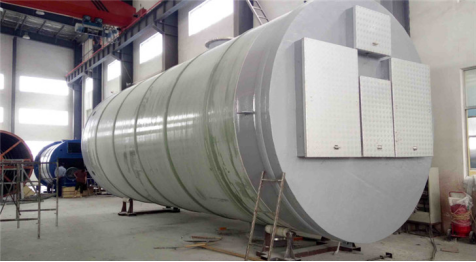 多罐体组合雨水泵站:常规雨水泵站流量较大,单罐没法满足水量要求。有多个标准罐体组合,并对进水管和出水管进行流量设计,满足瞬间流量需求,稳定运行。